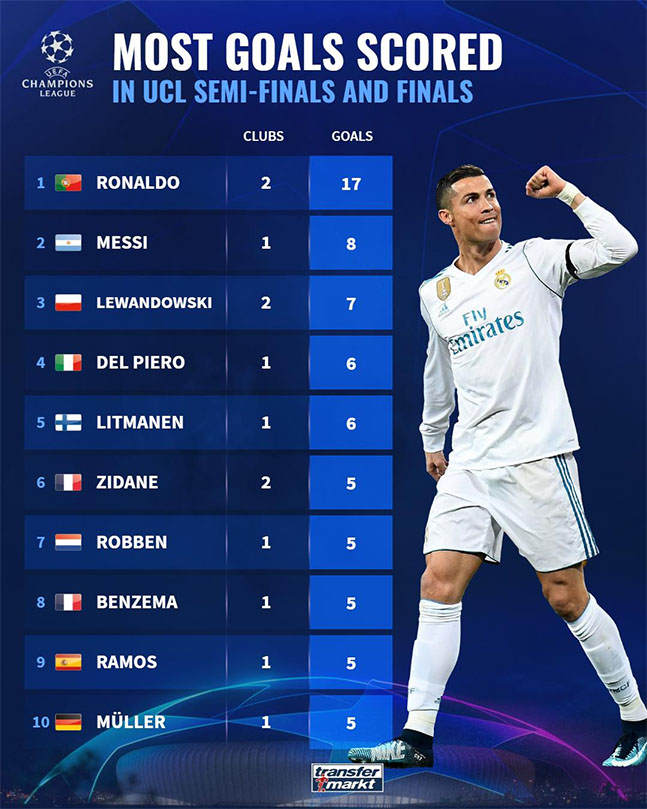 메시 레반도프스키보다 많네 호날두의 챔스 4강 결승전 골 머니투데이